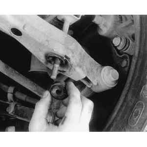 - Remove the sway bar-to-inner control arm mounting bolts, and remove the