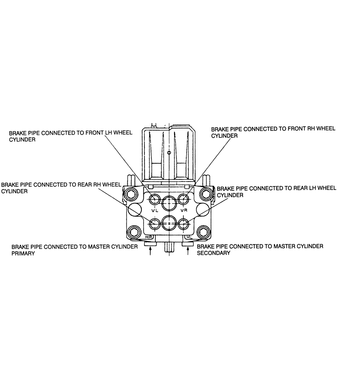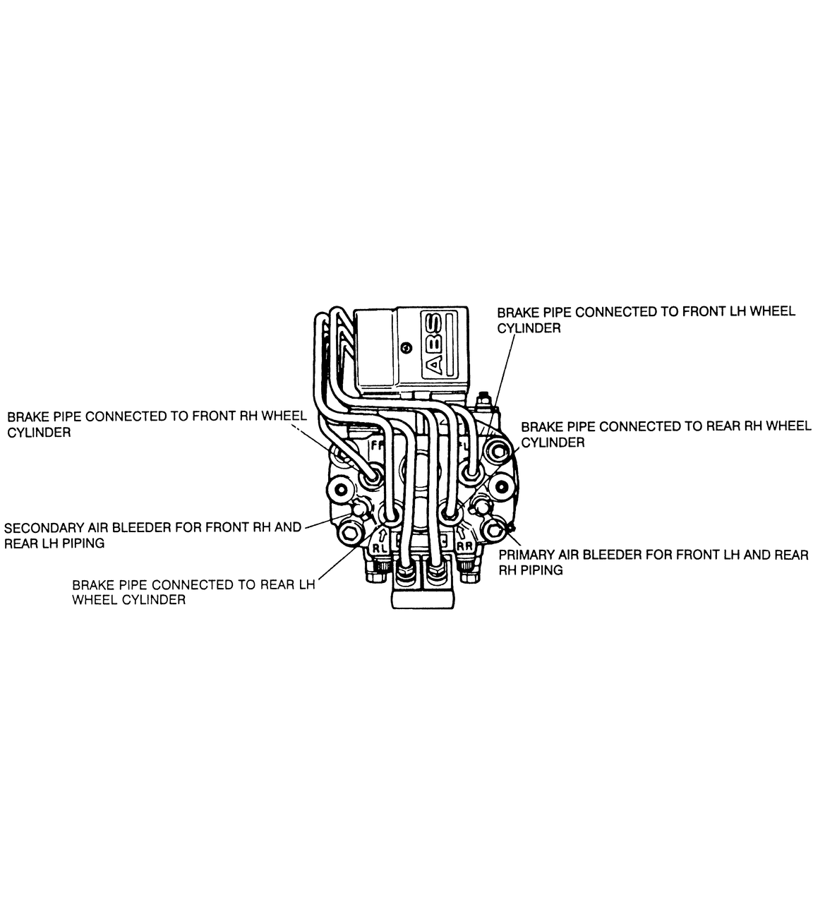 | Fig. 3: ABS hydraulic unit bleeding points — Nippon