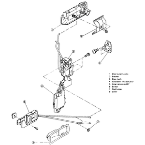Fig. 2: Exploded view of the rear power door lock assembly — Legacy shown; others similar