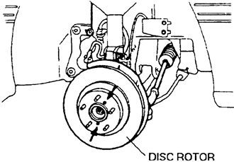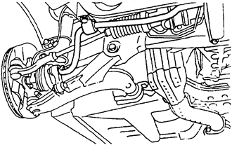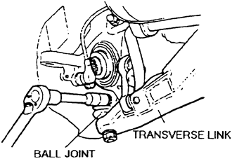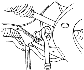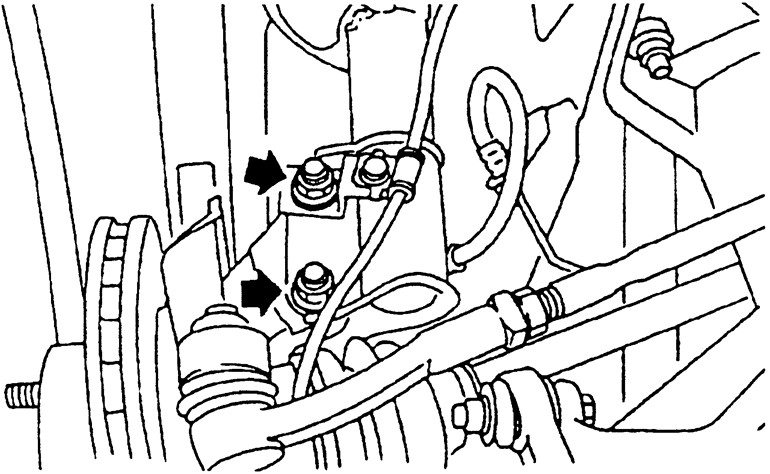 | Before loosening the strut-to-housing bolts (arrows), matchmark the camber adjustment bolt and strut |