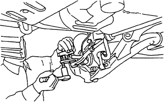 | Using a special puller tool, press the axle shaft from the spindle housing |