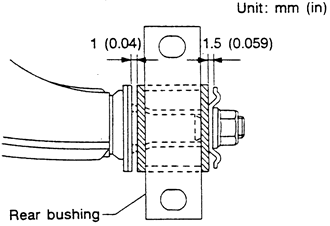 NOTE: Move the rear bushing back and forth until the control arm-to-rear bushing clearance if established. Refer to the illustration for specifications.