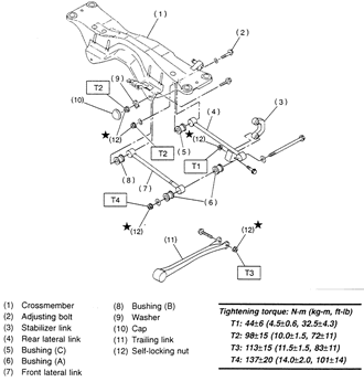 | Lateral link mounting and tightening specifications — Impreza |