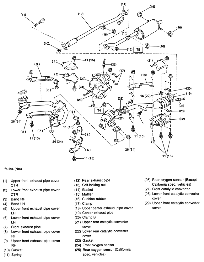- Catalytic converter to front exhaust pipe using new gasket. Torque the