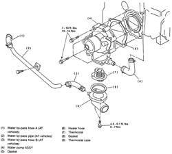 Water pump. Torque the bolts, in sequence, to 84–120 inch lbs. (10–14 Nm). After tightening the bolts once, retighten to the same specification again.