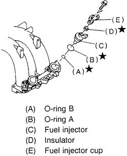 Fuel injector from fuel rail. Torque the mounting bolts to 2.5 ft. lbs. (3.4 Nm).