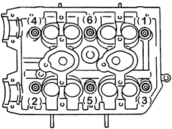 Cylinder head bolts in the proper sequence. Leave bolts 1 and 3 installed