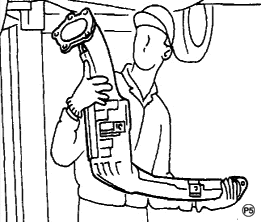 - Center exhaust pipe and temporarily tighten the bolts connecting the center exhaust pipe to hanger bracket and to transmission