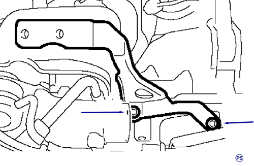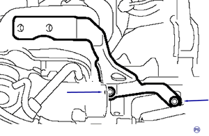 - Bolt connecting the center exhaust pipe bracket to transmission