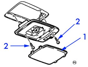 - Lens (1) and room light mounting screws (2)
