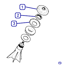- Cap (1), nut (2), and spacer (3) from rear wiper shaft
