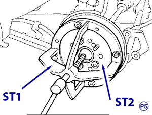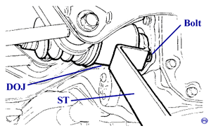 Note: If the drive shaft is hard to remove, use ST1 and ST2