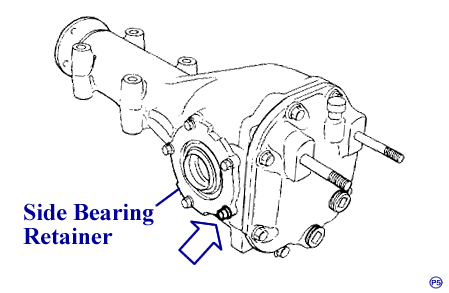 Be careful not to damage the side bearing retainer. Always use the bolt as shown in the figure, as a support point for SST during removal.