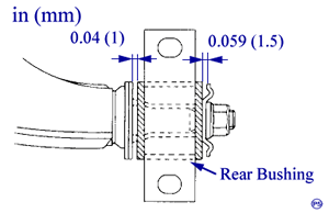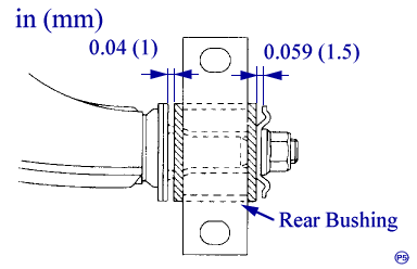 Note: Before tightening, move rear bushing back and forth until transverse link-to-rear bushing clearance is established (as indicated in figure.)