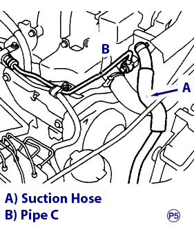 Do not allow fluid from the hose end to come into contact with pulley belt. To prevent foreign matter from entering the hose and pipe, cover the open ends of them with a clean cloth.
