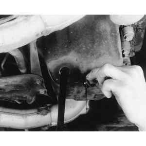 | Fig. 2: Remove the drain plug, and allow the oil to