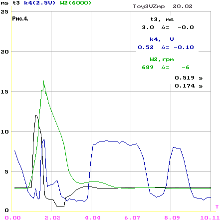 На рис.3 графики того же двигателя, но после подключении О2-simulator'а