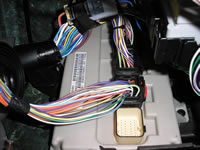 This is a picture of the BCM, it is located on the Fire wall, just behind the Emergency Brake of this vehicle. The bottom plug is empty, the Plug above it, for Identification we will call Plug 1, then Plug 2, and so on.