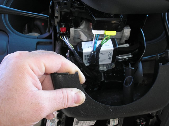 With the Lower Steering Column cover removed, you can now get to the Ignition wires and Transponder Ring on the Ignition Switch.