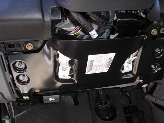 With the Under Dash panel removed, you can now see the Knee Bolster AirBag, remove the (5) 10mm bolts that hold this AirBag in place but do not remove this panel yet.