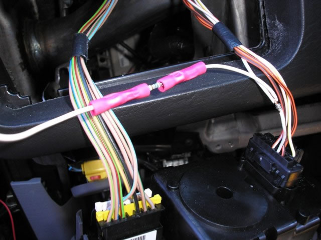 The (-) WHITE/BROWN PARKING LIGHT wire requires a (-) Negative thru a 2000 Ohm Resistor to turn on the Parking Lights. This Picture shows the Resistor connected to the Parking LIght wire on the vehicle, in most cases you will also need a 775 relay to make