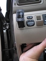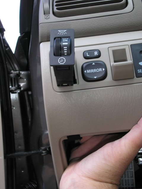 To access the back of the Dimmer Switch on the dash, pull out the Coin Tray, and reach up in and press out on the Dimmer Switch, it will pop right out of its holder, this will let you get to the plug on the back of this switch.