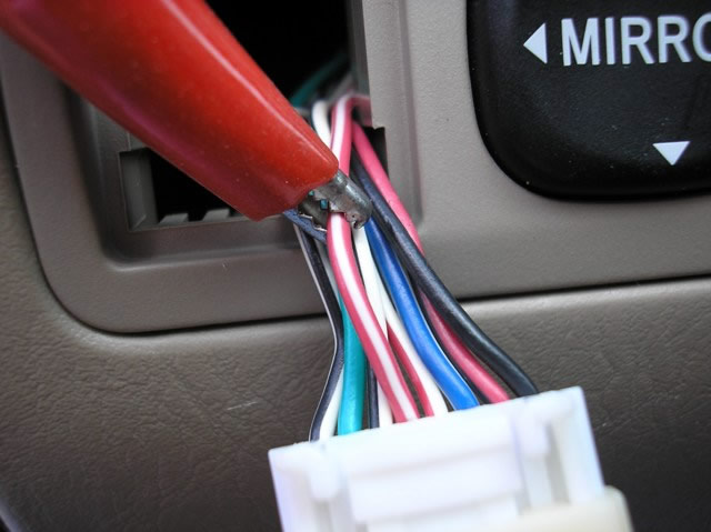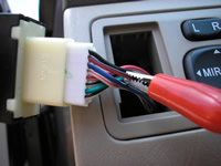 The (-) RED/WHITE DOOR TRIGGER wire, marked with the RED Clip, is at the back of the Dimmer Switch on the dash. This wire is only used with installing an Alarm System.