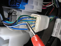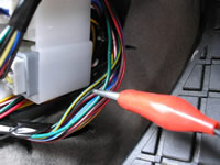 The (TYPE B) BLUE/WHITE LOCK wire, marked with the RED Clip, is located in a groupe of WHITE Plugs in the Drivers Kick Panel. The WHITE plug this BLUE/WHITE LOCK wire is located just below the BLUE plug attached to the side of the vehicle.
