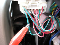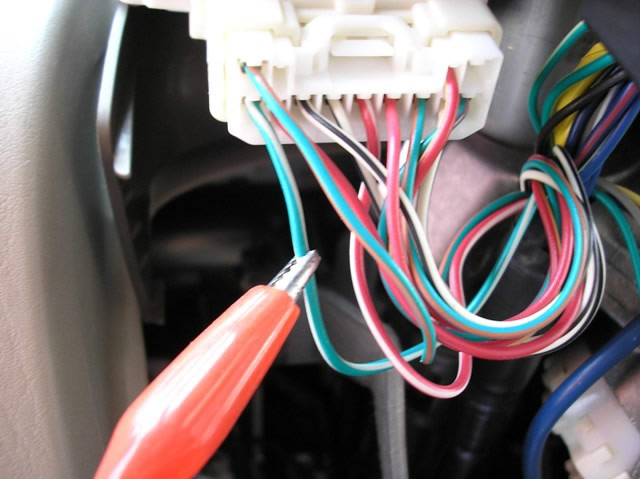 The (-) GREEN/WHITE PARKING LIGHT wire, marked with the RED Clip, is located at the Large WHITE Plug on the Left side of the Steering Column at the back of the Head Light Switch.