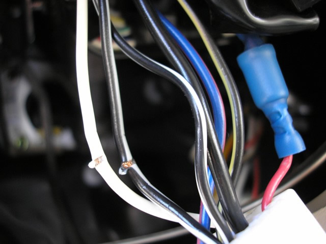 This is a picture of the IGNITION SWITCH HARNESS Plug removed from the Ignition Switch to expose the Ignition wires for this picture. Note** The WHITE (12 Volt Constant) and the BLACK/WHITE (Ignition #1) wires in this picture had T-Taps removed for the pi