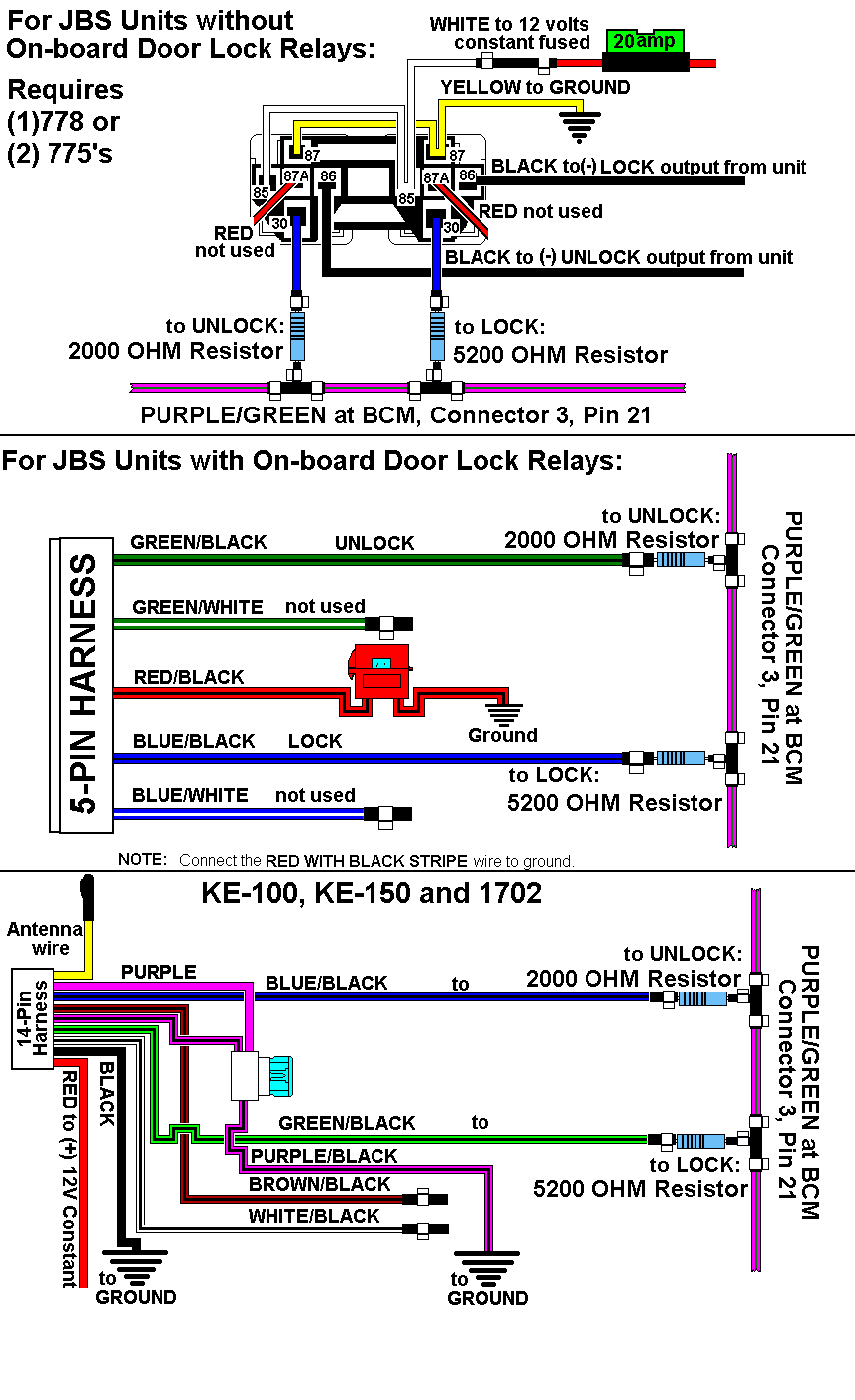 NOTE #3: This vehicle uses a 1-Wire Door Locking System, a (-)Negative thru a 5200 Ohm !/2