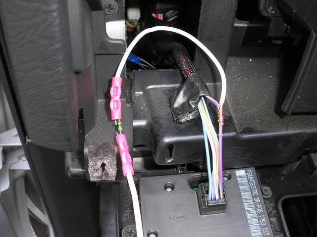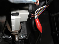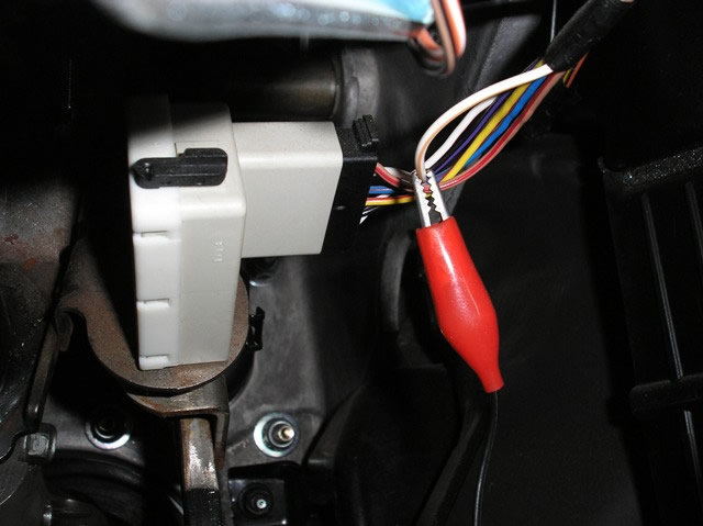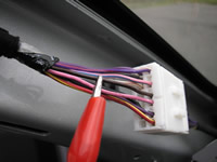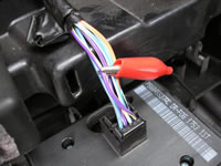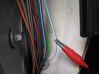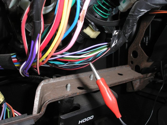 This picture shows the (-) PURPLE/YELLOW PARKING LIGHT wire, marked with the RED Clip in this picture.