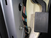 With the Kick Panel and Door Sill cover removed, you can now get to the Drivers Door Harness, this harness enters the vehicle thru the Boot between the Drivers door and the "A" Piller, and runs down along the Drivers Kick Panel and towards the Rear of the