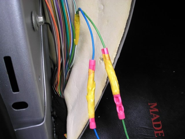 After testing and making the connections to the DOOR LOCK and UNLOCK wires and also the PARKING LIGHT wire, make sure you wrap all connections with Electrical tape, including the Resistors, so that no wires are exposed as seen in this picture.