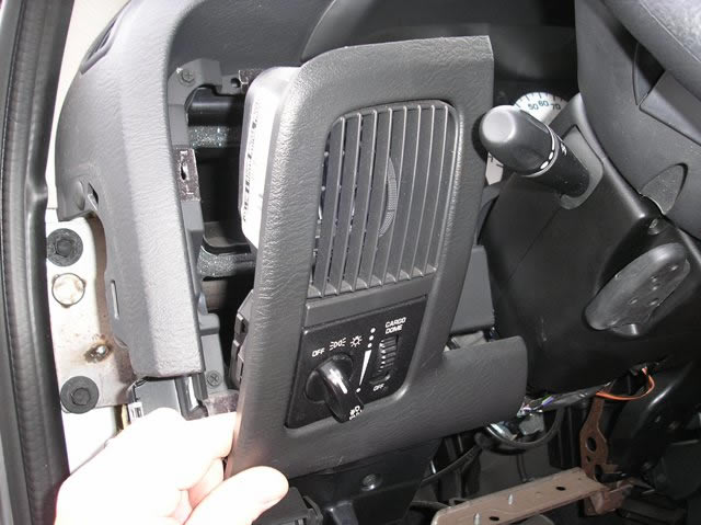 After the lower panel is removed, you can now pull on the Headlight Switch assembly, it also is just snapped into place.