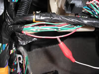 The (-) GREEN/BLACK HORN wire, marked with the RED Clip is located just below the Steering wheel in the column in a BLACK Plug next to the Air Bag plug.