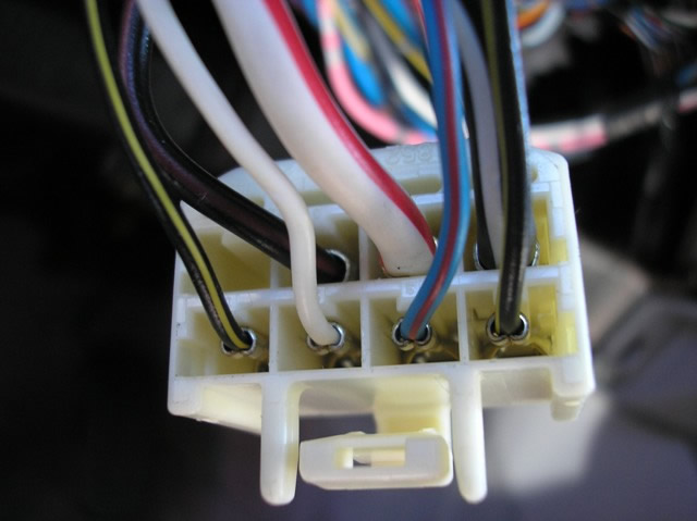 The (+) GREEN/WHITE BRAKE wire, marked with the RED Clip, is located in the BLUE Plug at the Brake Switch attached to the top of the Brake Pedal under the dash.