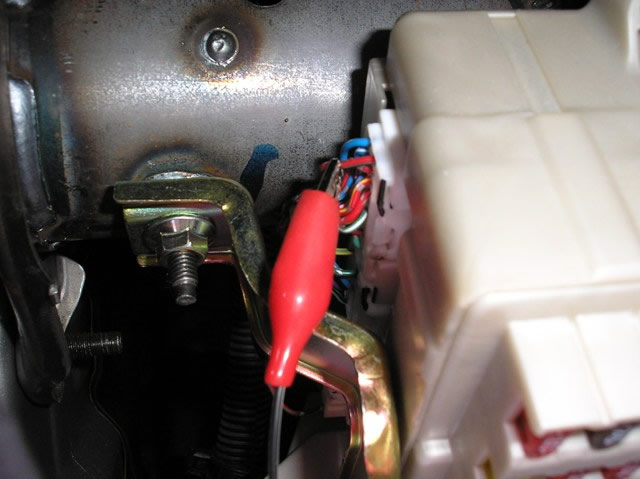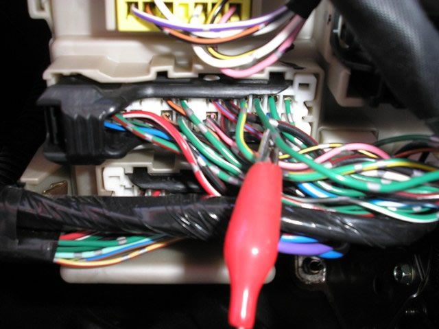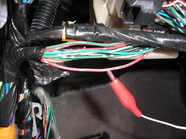 When installing an alarm system, you must use this (-) RED/GREEN Passenger Door Trigger wire, marked with the RED Clip, located in the WHITE Plug, High on the Left side of the Fuse Box.