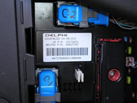 This picture shows the BCM Plugs marked with the IDENTIFICATION NUMBERS (C1 and C2) on the BLUE Plug Covers. The RED Plug C3 (BLACK Plug Cover) is not numbered and the C4 Plug is located on the FRONT of the BCM and cannot be seen, but you can see the wire