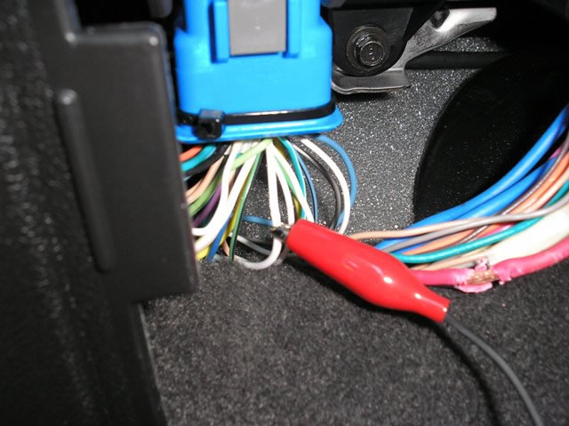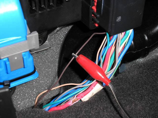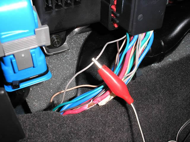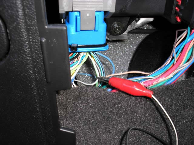 This shows the (+) WHITE BRAKE wire in the C1 Plug on the BCM, marked with the RED Clip, as seen in this picture, there are several WHITE wires in this plug, the BRAKE wire is a little heavier than all of the other WHITE wires in the harness.