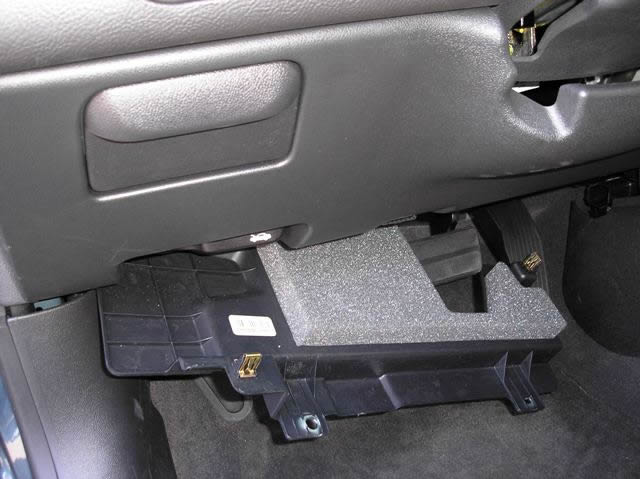 This picture shows the BCM or FUSEBOX Cover at the Front of the Passenger Center Console. This cover just snaps off. ALL of the wires needed for the Installation of a REMOTE STARTER, KEYLESS ENTRY or any other accessory will be wired in behind this panel.