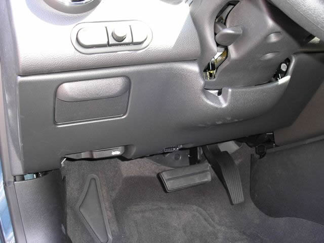 This picture shows the UNDER DASH Panel on this vehicle, all though there will be no wires found under this panel it must be removed, this will be the location of the Remote Starter when installed.