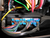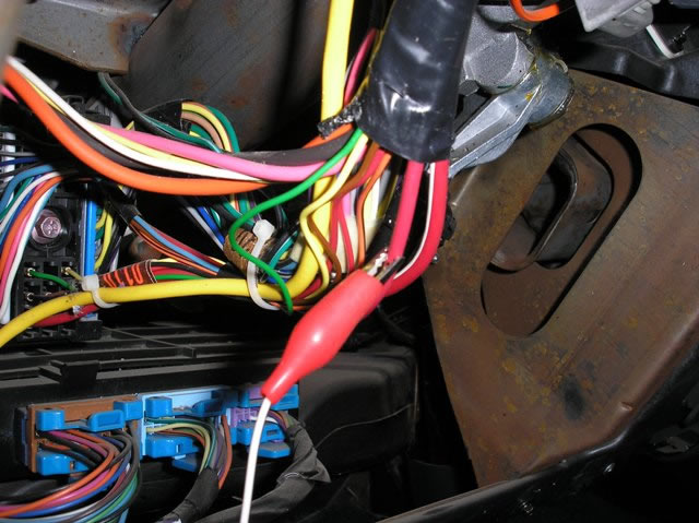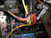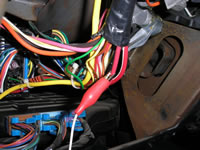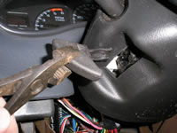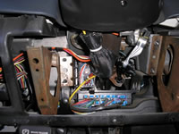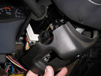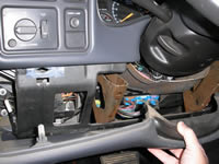 With the Metal Knee Bolster pan removed you can see get to the Ignition Harness wires, but you will first need to remove the Black Nylon wrap around these wires and remove the Lower Steering Column cover.