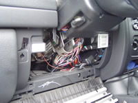 BACK OF FUSEBOX, IN BLACK PLUG, TOP LEFT CORNER