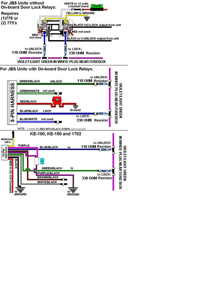 USE LOCK WIRE (-) thru a 100 Ohm Resistor, SEE NOTE #2