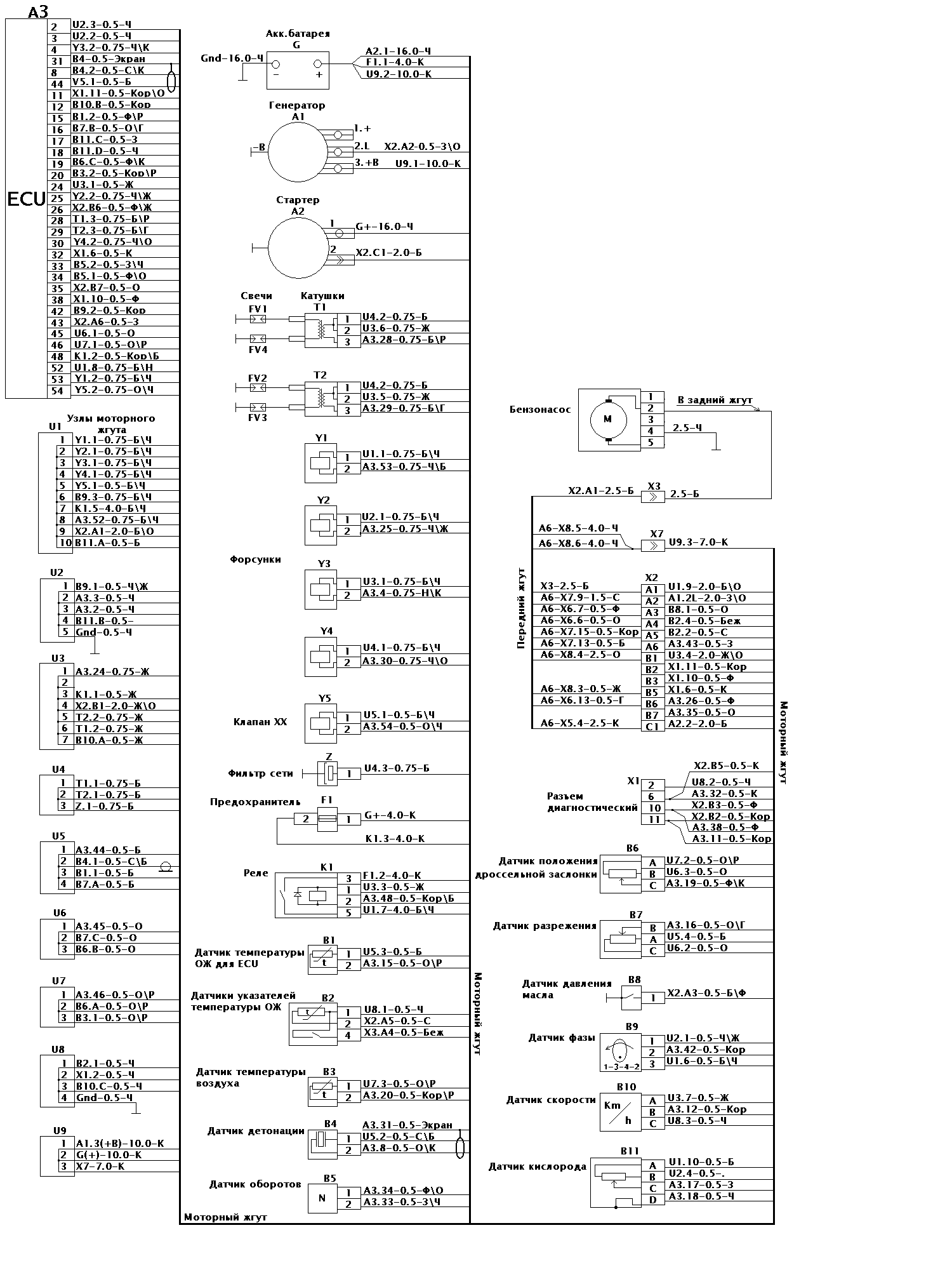 Схема подключения электронного блока управления двигателем