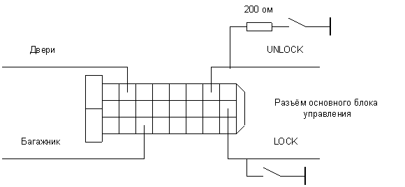 | Разблокировка двери | Чёрный\голубой | Отрицательная | Разъём основного блока управления |