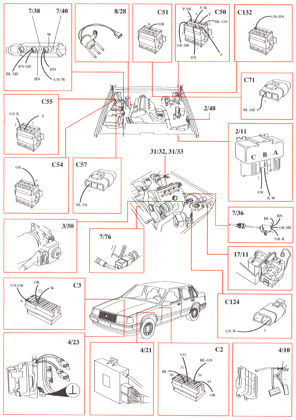 31/32 Ground connector on engine (power ground)