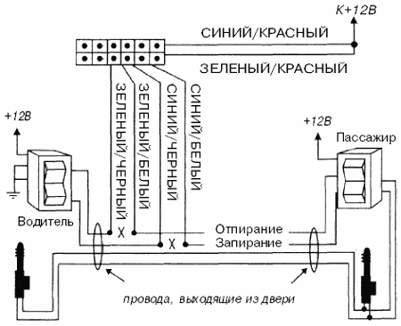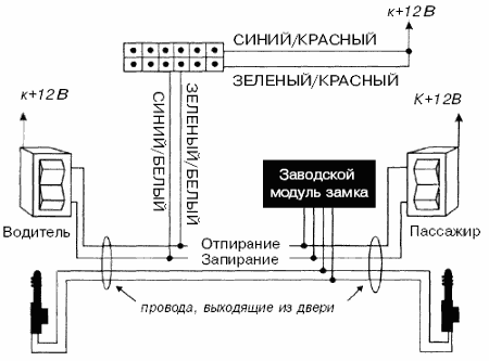 Если автомобиль не оборудован центральным замком или электроприводами замков дверей, Вы можете установить дополнительные электроприводы и подсоединить их к системе следующим образом: