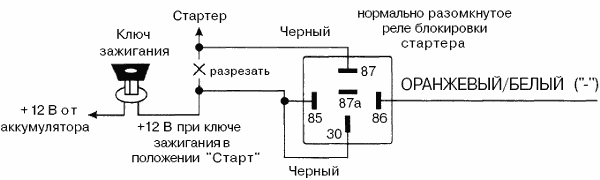 | Макс, ток нагрузки реле блокировки стартера: | 40А |